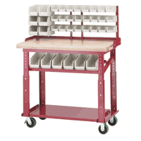Height - Heavy Duty Work Table Work Table with Accessory Package • 24" x 48" Adjustable height work table. • 1 - Rail Kit. • Blue, Red, or Gray enamel finish. • 24 - Small AkroBins (Model 30220). • 12 - Medium AkroBins (Model 30230). Model No. RHWB2448P5PY1. Please specify frame color and bin color. |