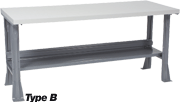 Flared leg work benches shown below |
